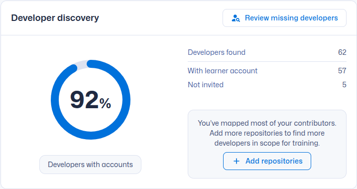 Provides an overview of the amount of developers in the platform that are also making commits into your uploaded repositories via Trust Agent