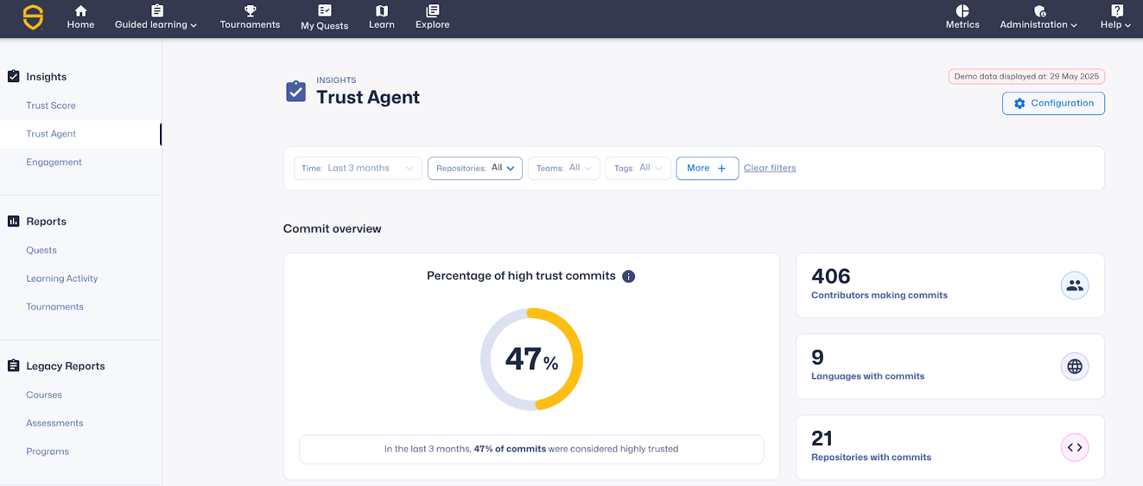 Targeted Training: If a critical repo has low trust commits and known vulnerabilities, configure a specific training program for those developers.
