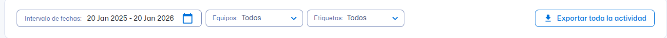 Si desea exportar todos los datos de este informe a un archivo CSV, simplemente haga clic en el botón "Exportar toda la actividad" en la barra de filtros.