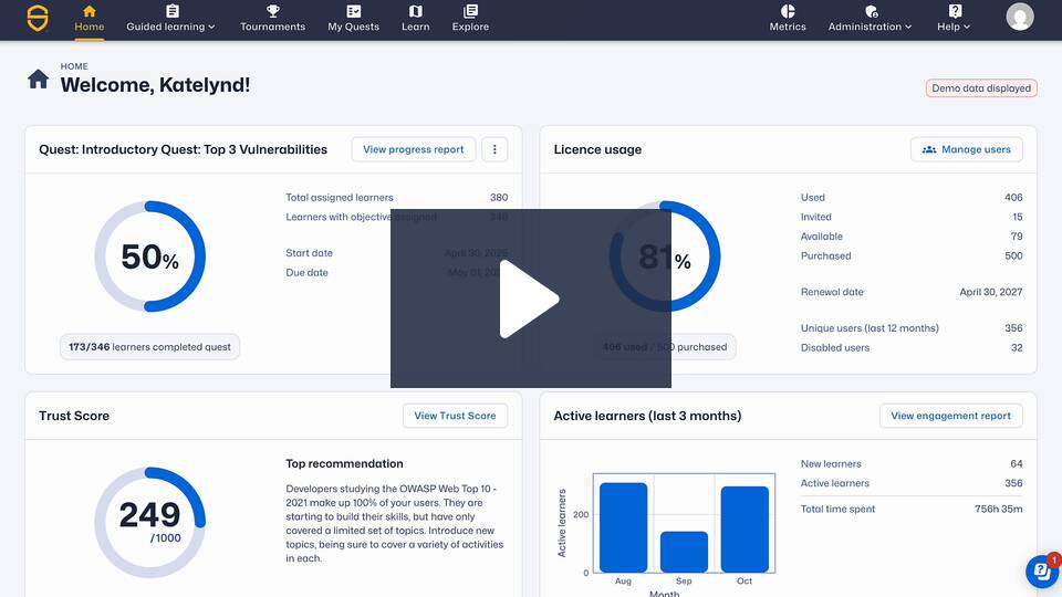 Developer Discovery cubre este vacío inspeccionando directamente los commits de su repositorio de código. Al identificar a los autores de commits de código activos que aún no están en la plataforma de aprendizaje de SCW, puede asegurarse de que ningún desarrollador se quede atrás en su programa de formación en seguridad de aplicaciones. La identificación automática de los lenguajes de programación utilizados por sus desarrolladores, basada en su historial de commits, también se incorpora a las recomendaciones de lenguaje sugeridas a cada alumno cuando comienza sus misiones asignadas para proporcionar rutas de formación específicas para cada lenguaje.