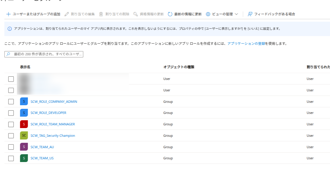 次に、作成したエンタープライズ アプリケーションにグループを追加しましょう。