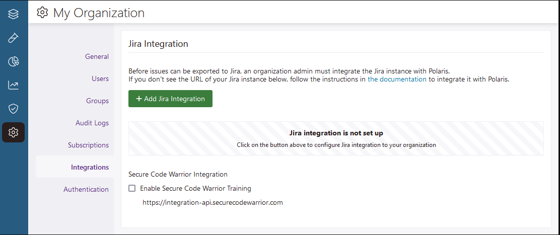 Polaris Platformがセキュリティ問題を特定すると、特定のSecure Code Warriorトレーニングモジュールへのリンクを提供し、開発者に特定の脆弱性を修正する方法と、今後同様の問題が発生しないようにする方法を教えることができます。Secure Code Warrior の統合を有効にするには、以下の手順に従ってください: