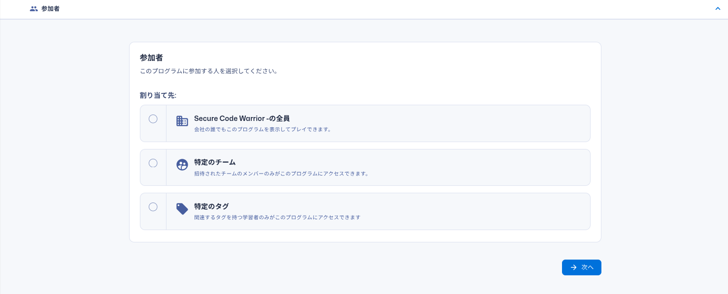 このプログラムに参加するユーザーを選択します。次の対象に割り当てることができます。